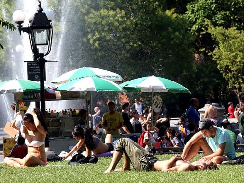 Luego de haber padecido uno de los inviernos más intensos y más largos en la historia recientes, la ciudad de Nueva York sufre desde finales de julio temperaturas por encima de los 32 grados centígrados, que el jueves alcanzaron los 35 grados centígrados.