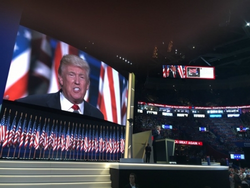 Trump fue presentado ante los más de dos mil 400 delegados que abarrotaban el pleno de la Convención por su hija Ivanka, en un escenario adornado con un gran cartel con su apellido en letras doradas, antes de hablar durante una hora y 15 minutos.