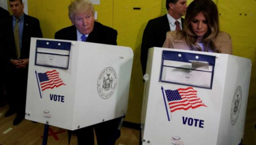 El candidato presidencial Donald Trump y su esposa emitieron hoy su voto en la ciudad de Nueva York, luego de que el magnate descalificara las encuestas que lo ubican por debajo de su rival Hillary Clinton en la carrera por la Casa Blanca.