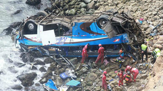 Mueren 36 al caer autobús a acantilado en Perú