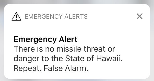 There is no missile threat. It was a false alarm based on a human error. There is nothing more important to Hawai‘i than professionalizing and fool-proofing this process.