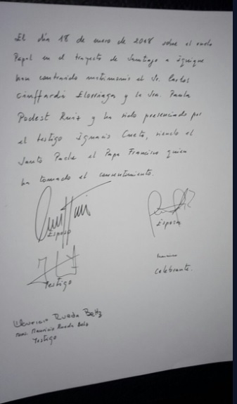 Uno de los socios y máximo ejecutivo de la aerolínea, el chileno Ignacio Cueto, fue testigo de la boda, cuya validez quedó inscrita en una "acta canónica" firmada por el obispo de Roma.