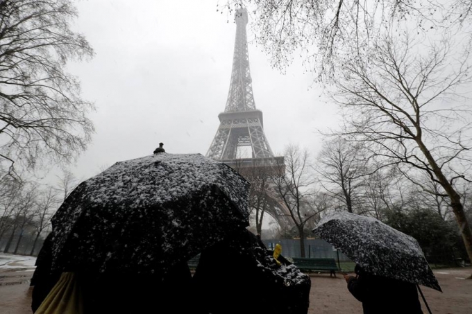 Durante la jornada de ayer las nevadas en la región parisina dejaron entre cinco y 15 centímetros de nieve en la región parisina, 12 en el centro de París.
