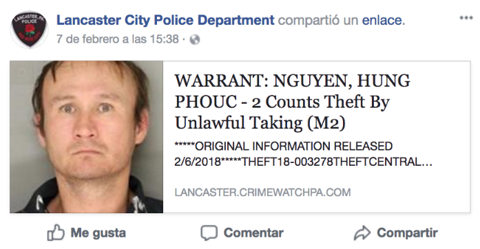 Después la policía explicó que, a pesar del retrato amateur y muy caricaturizado, varias personas lograron reconocerlo. Nguyen enfrenta dos cargos de robo, pero aún no ha sido arrestado.