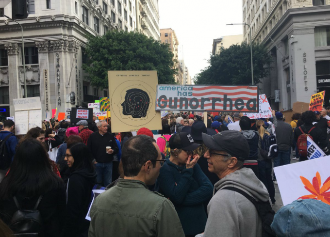 La mayor concentración tuvo lugar en calles del centro de Los Ángeles, donde, según estimaciones de la policía, en las primeras horas había ya unos 40 mil manifestantes, mientras los organizadores pronosticaban una asistencia de unas 200 mil personas.