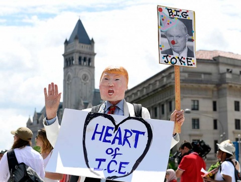 Los blancos de su protesta, además de Trump, son el secretario de Justicia, Jeff Sessions, y las fuerzas policiales de la frontera, en particular la del Servicio de Ciudadanía e Inmigración de los Estados Unidos (ICE).