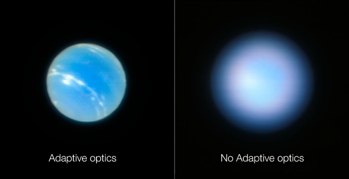 Mediante un nuevo sistema de óptica adaptativa, el Telescopio VTL del Observatorio Europeo Austral (ESO, por sus siglas en inglés), capturó imágenes precisas de Neptuno, así como de cúmulos de estrellas y otros objetos.