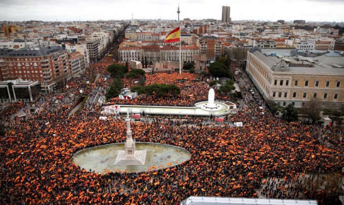 La manifestación, celebrada bajo el lema "por una España unida, ¡elecciones ya!", fue convocada la semana pasada por los líderes de los partidos Popular (PP), Ciudadanos y Vox, informaron medios locales.