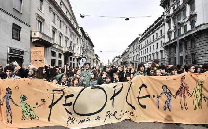 Bajo el lema de “Las personas primero”, y entonando “Bella ciao“, el más conocido canto de la resistencia italiana durante la Segunda Guerra Mundial, la marcha fue convocada para exigir a la clase política italiana un país sin discriminación, sin muros ni barreras.
