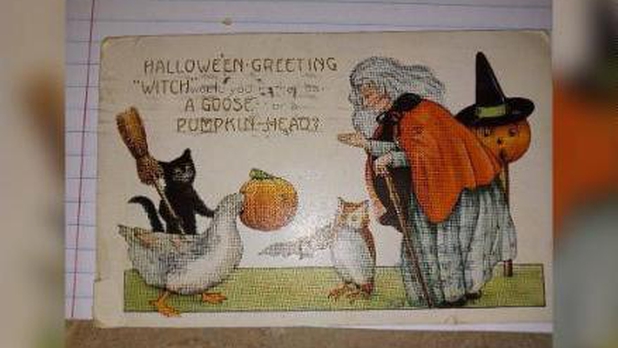 Al frente de la postal, según las fotos compartidas por Keech a la cadena Fox News, se encuentra un dibujo de una bruja, un gato negro con una escoba, un búho y un ganso, que sostiene una calabaza con su boca. La imagen viene acompañada de un mensaje que dice: "Saludos de Halloween. ¿Cuál preferirías ser? ¿Un ganso o una cabeza de calabaza?”.