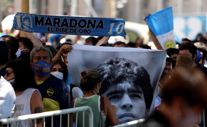 Luego de una noche de vigilia en la emblemática Plaza de Mayo, miles de personas iniciaron a las 06H00 locales un lento paso frente al féretro cubierto con la bandera de Argentina y la casaca del '10' de la selección y de su querido Boca Juniors, en la Casa Rosada.