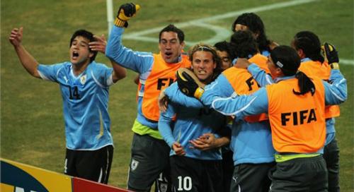 Johannesburgo, Sudáfrica a 02 de julio de 2010.- Uruguay avanzó a las semifinales de la Copa Mundial de la FIFA Sudáfrica 2010 al vencer a Ghana 4-2 en la definición desde los puntos del penal, luego de que el partido, disputado en el estadio Soccer City de Johannesburgo finalizara igualado 1-1.