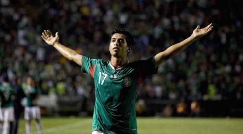 Sobre el minuto 10, luego de una falta sobre Giovani dos Santos, Andrés Guardado -el más enjundioso- ejecuta un tiro libre, pero el balón es desviado por el guardameta colombiano David Ospina.