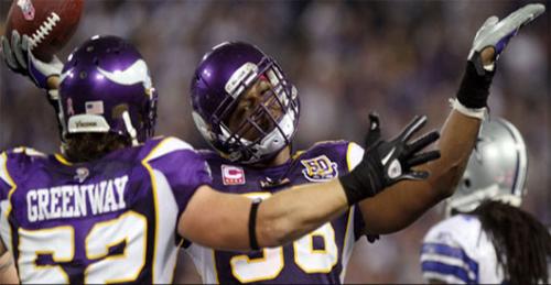 Minneapolis, Minnesota a 17 de octubre de 2010.- Percy Harvin regresó 95 yardas una patada de despeje hasta la zona de anotación y los Vikingos de Minnesota se sobrepusieron el domingo a otro partido disparejo de Brett Favre para doblegar 24 a los Vaqueros de Dallas.