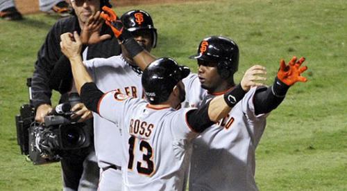 El colombiano Édgar Rentería logró un home run que impulsó tres carreras para los de San Francisco; anotaron Cody Ross, Juan Uribe y el cafetalero.