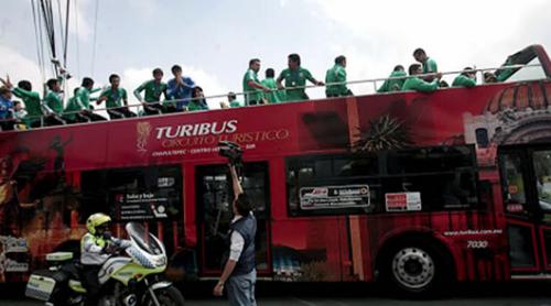 Los jugadores mexicanos abordaron por la mañana un Turibús del gobierno del Distrito Federal para realizar su recorrido por calles de la Ciudad de México y celebrar con la afición la obtención del título en el certamen.