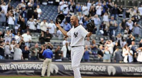 Rivera permaneció y recibió las felicitaciones. Alex Rodríguez, Mark Teixeira y Jeter fueron los primeros en saludarle. Los jugadores de los Mellizos observaron desde su cueva.