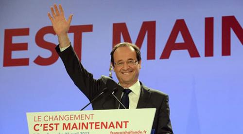 París, Francia a 22 de abril de 2012.- El candidato socialista a las elecciones presidenciales, François Hollande, cuya primera vuelta se celebró hoy en Francia, logró un 28.10% de los votos, poco más de un punto por delante del presidente Nicolas Sarkozy, según datos oficiales.
